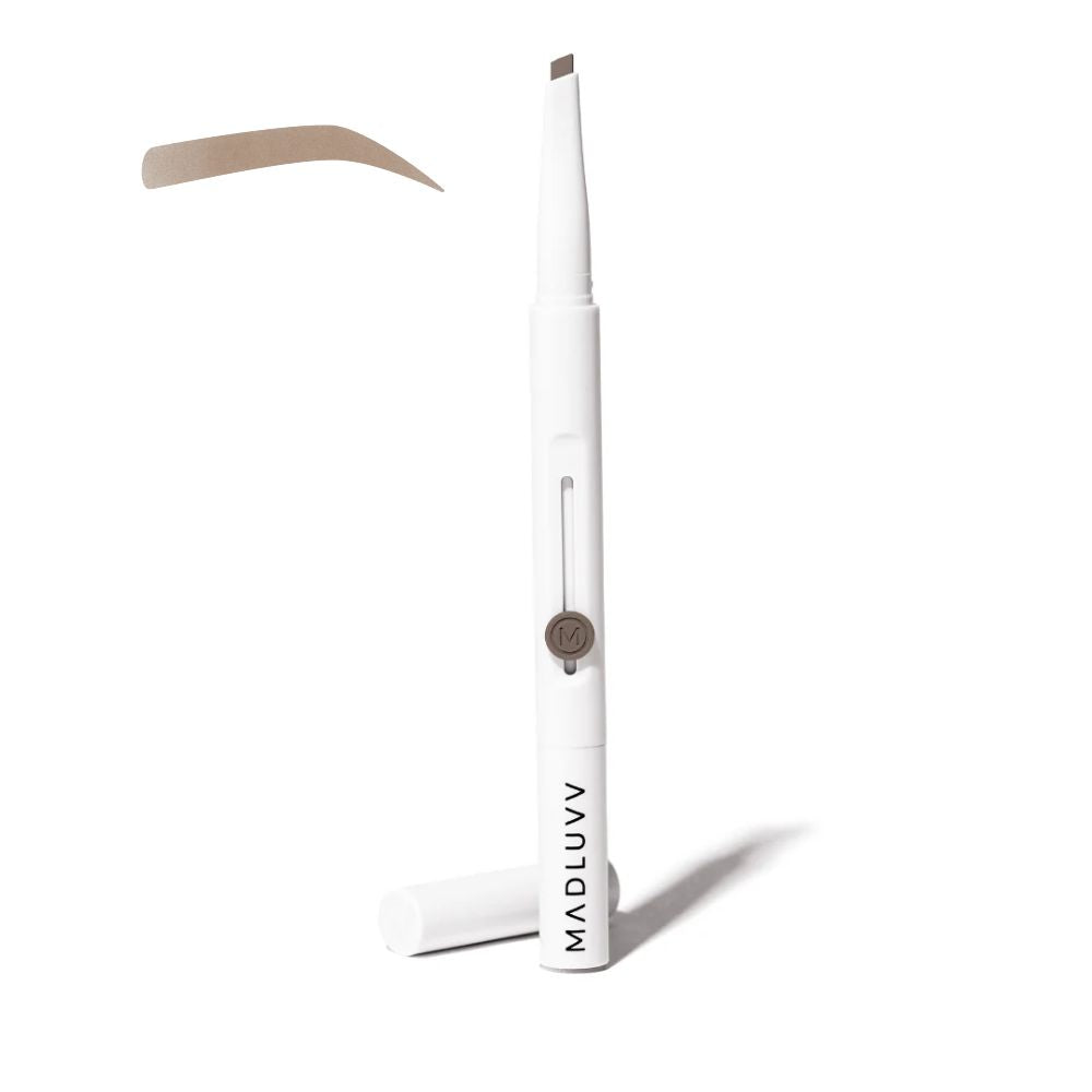 The Madluvv Exacto Brow Pencil is a truly do-it-all brow pencil designed for effortless, salon-quality brows. Featuring a custom blade-shaped pencil tip, Exacto allows you to create ultra-fine, hair-like strokes using the pointed edge, or smooth, clean definition using the flat edge — all with one intuitive tip. On the opposite end, a premium spoolie softly blends and disperses pigment for natural, feathered brows. Smooth, long-wearing, and incredibly easy to use, this is the most intuitive brow pencil you’ll ever reach for.