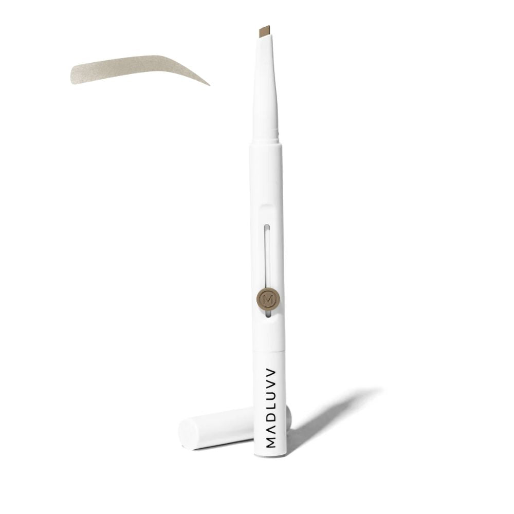 The Madluvv Exacto Brow Pencil is a truly do-it-all brow pencil designed for effortless, salon-quality brows. Featuring a custom blade-shaped pencil tip, Exacto allows you to create ultra-fine, hair-like strokes using the pointed edge, or smooth, clean definition using the flat edge — all with one intuitive tip. On the opposite end, a premium spoolie softly blends and disperses pigment for natural, feathered brows. Smooth, long-wearing, and incredibly easy to use, this is the most intuitive brow pencil you’ll ever reach for.